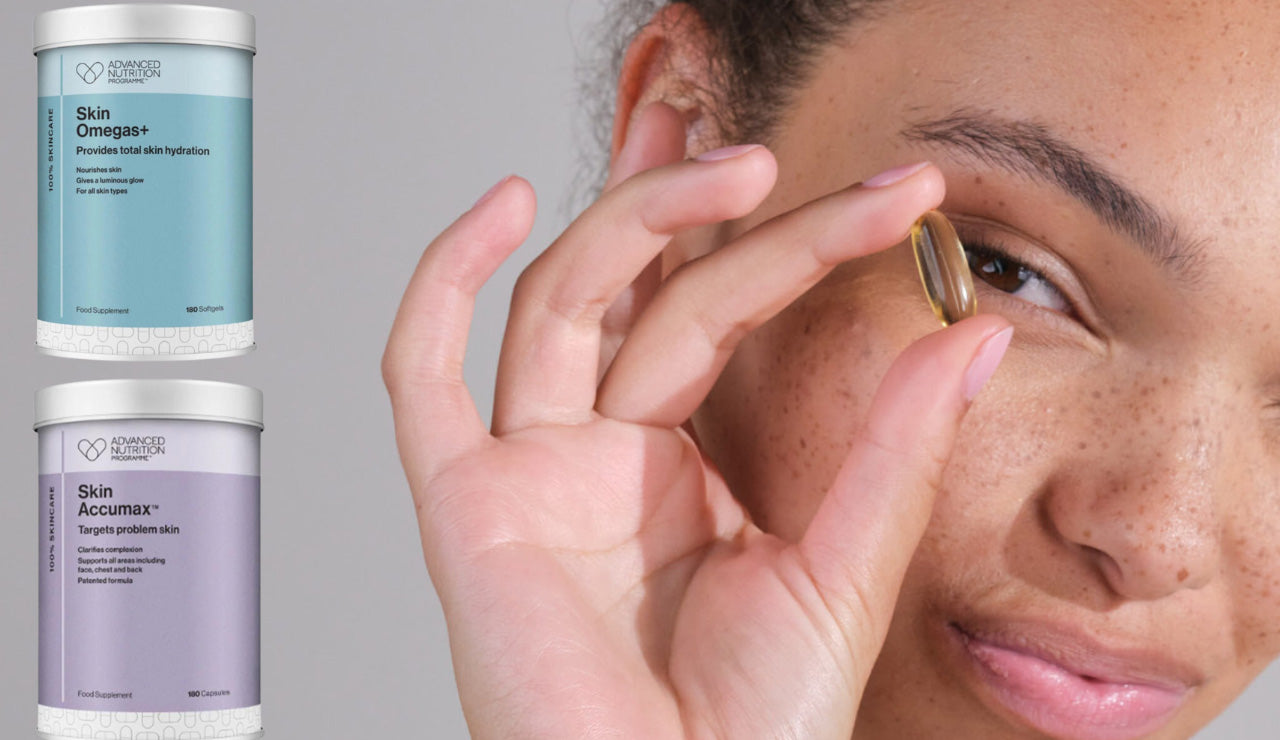 Advanced Nutrition Programme Skin Omegas+ give the extra benefit of vitamin A, so it is the perfect companion to boost your normal skincare routine. Skin Omegas+ contains optimum levels of...
